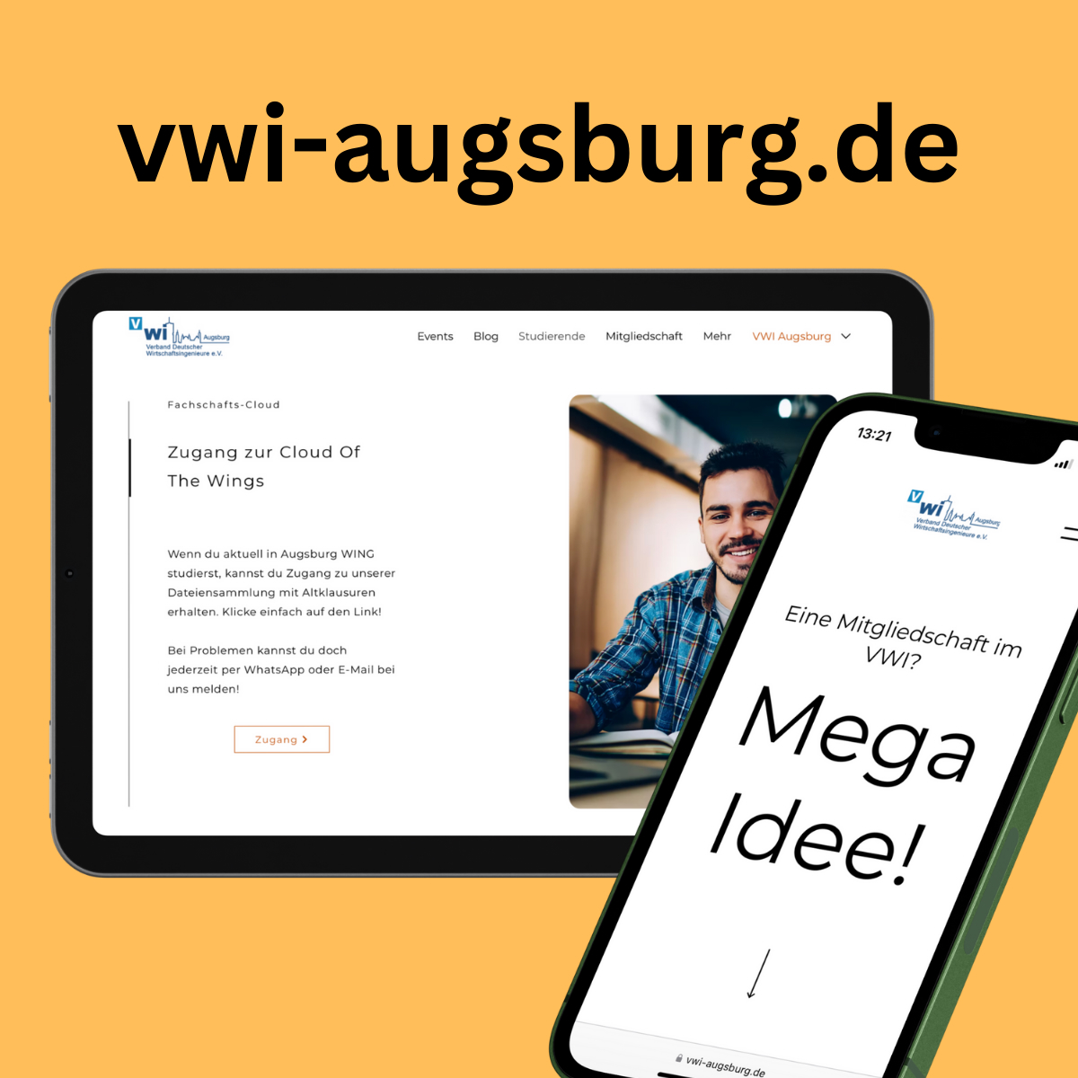 I developed a new website and accompanying member app for the WING student association (VWI Hochschulgruppe Augsburg e.V.). The goal was to present the organization with a fresh, modern, and more professional design.